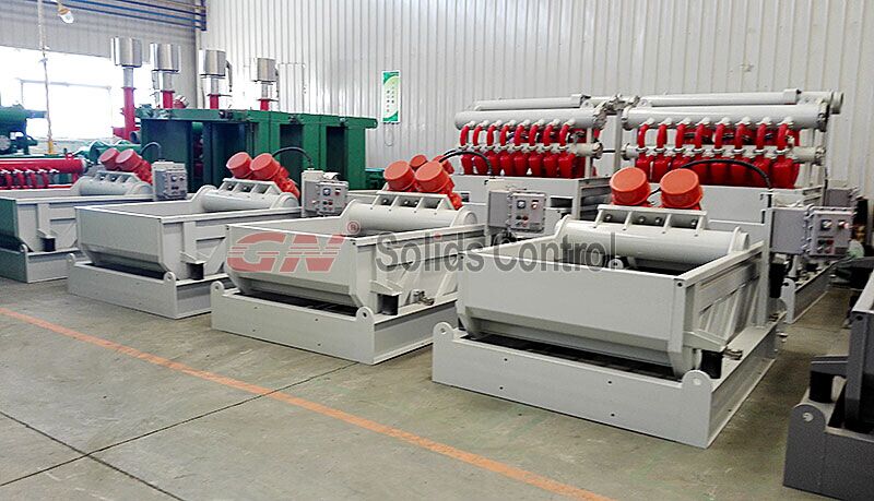 1500gpm泥漿系統(tǒng)包含以下項(xiàng)目: 1)3臺(tái)500gpm處理量的振動(dòng)篩,型號(hào)為:gnzs703e-dz,總處理量為1500gpm 2)1臺(tái)處理量為1500gpm的泥漿清潔器,型號(hào)為:gnzj703e-3s16n 3)1個(gè)帶振動(dòng)篩和泥漿清潔器的泥漿回收罐 4)1個(gè)帶泥漿攪拌器,泥漿槍的儲(chǔ)漿罐,用于儲(chǔ)存和混合泥漿。冠能固控可以根據(jù)不同需求提供小型或大型泥漿循環(huán)系統(tǒng)。200gpm泥漿回收系統(tǒng),350gpm泥漿循環(huán)系統(tǒng),500gpm泥漿循環(huán)系統(tǒng),1000gpm泥漿循環(huán)系統(tǒng),1500n泥漿循環(huán)系統(tǒng),如果你有需求,請(qǐng)隨時(shí)與冠能固控聯(lián)系!