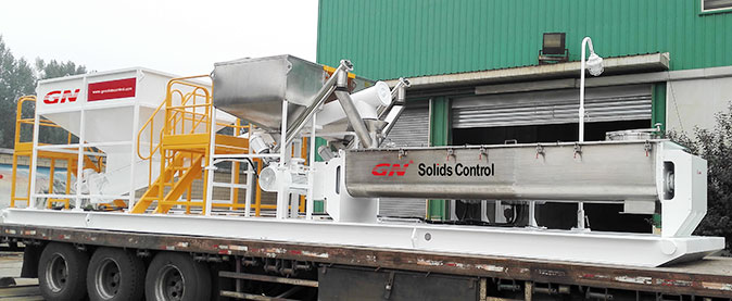 本套系統(tǒng)分為2個(gè)階段的固控處理和一套泥漿配置混合系統(tǒng)。鉆井泥漿初步分離采用的是冠能GNZS752型振動(dòng)篩,200GPM的處理能力、兩片篩網(wǎng)的構(gòu)造用來(lái)處理鉆井泥漿中的大顆粒的固體。振動(dòng)篩處理后的液體通過(guò)離心泵輸送給迷你型的沉降離心機(jī)GNLW223進(jìn)一步處理,可達(dá)3800RPM的轉(zhuǎn)速,分離的固體顆??蛇_(dá)到2個(gè)微米。