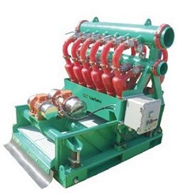 安裝與調(diào)試;以河北冠能石油機(jī)械制造有限公司的GNZJ752-12N鉆井液除泥清潔器為主。   安裝:司鉆組織鉆工完成。   將除泥器放到2#罐的除泥倉的罐面,除泥器的振動篩排砂口應(yīng)突出罐邊50-80mm。   連接所有法蘭,中間加上密封圈,用螺栓緊固。   電氣師連接并固定好砂泵和振動篩電機(jī)電源線,電氣系統(tǒng)均要防爆。   電纜盡量穿過防爆管,防止泥漿蒸汽腐蝕。   調(diào)試:電氣師   檢查除泥器電機(jī)接地完好。   啟動振動篩電機(jī),調(diào)試電機(jī)轉(zhuǎn)向與其護(hù)罩上的箭頭方向一致,否則振動篩不能排砂。   使用:鉆井液工   啟動時先啟動小振動篩,再檢查閘門,然后啟動砂泵。   停止時先關(guān)閉砂泵,然后沖洗小振動篩,后停小振動篩。   操作:鉆井液工   調(diào)整旋流器底流螺母,使其底流呈傘狀噴射排出。   停用時,應(yīng)徹底放凈旋流器內(nèi)的泥漿防止凝固或結(jié)冰。將篩網(wǎng)沖洗干凈,   檢查各部位是否有異常。   嚴(yán)禁用鐵掀拍打篩網(wǎng),或用其它硬物刷刮篩面,以確保篩網(wǎng)的使用壽命。   更換篩網(wǎng)時,篩架上橡膠墊應(yīng)安裝齊全,篩網(wǎng)不許出現(xiàn)歪扭和松緊不均等   現(xiàn)象,保證篩網(wǎng)平整。   拆卸:與安裝順序相反。置于平坦地面待運(yùn)。附件可置于罐內(nèi),綁扎好。   檢查和保養(yǎng):鉆井液工   檢查   查看壓力表壓力是否在工作壓力范圍內(nèi);壓力表如有損壞或指針不動應(yīng)及   時更換;壓力表進(jìn)液口的濾網(wǎng)如有損壞或堵塞應(yīng)及時更換或清洗。   激振電機(jī)運(yùn)轉(zhuǎn)累計(jì)100小時,為初運(yùn)轉(zhuǎn)期,在初運(yùn)轉(zhuǎn)期內(nèi),每班應(yīng)檢查連   接螺栓并進(jìn)行緊固。   應(yīng)經(jīng)常檢查兩邊激振器外殼溫度。激振電機(jī)運(yùn)轉(zhuǎn)累計(jì)5000小時,應(yīng)對軸承進(jìn)行檢查,若已損傷或軸承壽命 到期,應(yīng)更換軸承并加滿潤滑脂。如果發(fā)現(xiàn)兩端的激振力不一致時可拆開兩端,把兩端的激振塊調(diào)為一致。   保養(yǎng):機(jī)械師指導(dǎo)鉆井液工完成。   一般在運(yùn)轉(zhuǎn)500小時左右應(yīng)補(bǔ)充潤滑脂,若發(fā)現(xiàn)潤滑脂變質(zhì)時,應(yīng)及時更換。