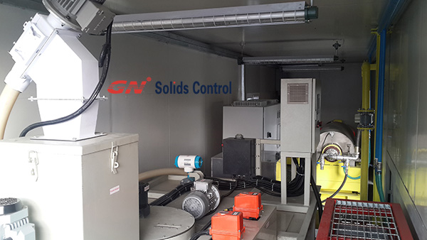 一套包含一臺大轉(zhuǎn)鼓泥漿離心機(jī)的絮凝加藥系統(tǒng),安裝在40尺的集裝箱內(nèi)